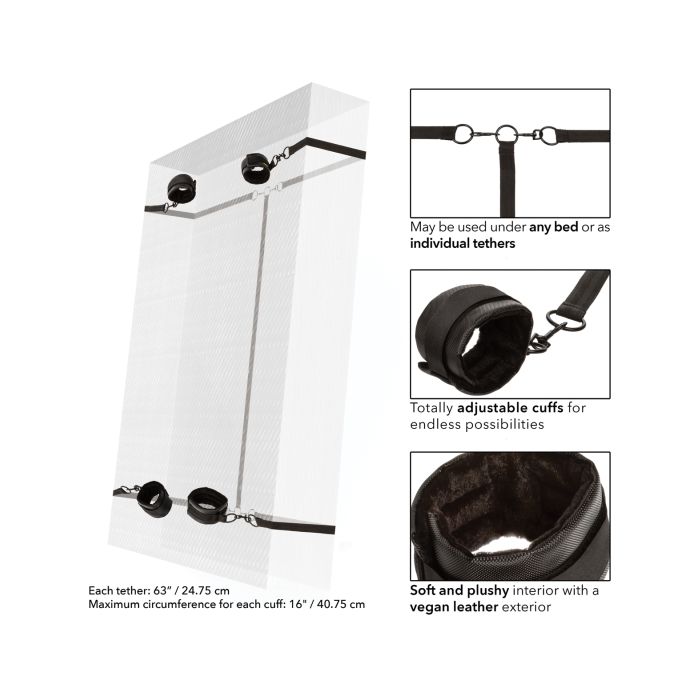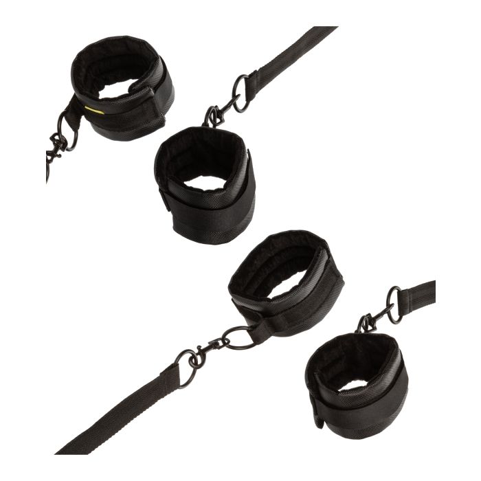 Beware: The Boundless™ Bed Restraint may tie up your evenings for a long time to come! This adult toy comes with wrist and ankle cuffs that offer velcro-style closures and universal claps, ensuring maximum comfort and restraint. The very-sturdy, adjustable securing straps wrap beneath nearly any size bed mattress, ensuring that the sub is bound to the will of the dom. As one of the rising adult toy product categories, BDSM sex toys have seen a surge in the pleasure products community, releasing people of their pent-up tensions in the most sexual ways possible. Each of the double-padded, double-stitched wrist cuffs and each of the ankle cuffs are detachable and can be used as individual cuffs, and the soft, plushy interior makes sure that even when someone is completely bound down, they aren't focusing on any discomfort-- they are focusing on their dominant partner and the experience unfurling before them, instead. Built to last, the sturdy universal clasps and O-rings with a swivel design further care for the subs dexterity and comfort, while offering full restraint. The Boundless™ Bed Restraint is easily hidden for those visiting guests with wandering eyes. But perhaps, someone needs to be taught a lesson.