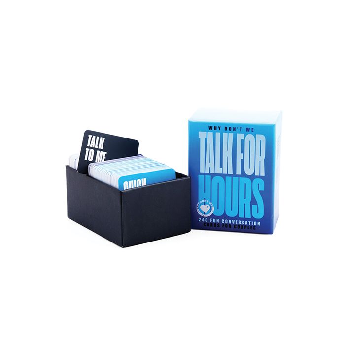 How many times have you found yourself in that awkward silence because you ran out of things to say to your partner? Or worse... to your friends? Say goodbye to that! Start the conversation with our game designed to spark deep, fun, and exciting discussions. You decide how to play—there are endless ways: On a date, while cooking, on a road trip, at the beach, in the snow, or just sitting on the couch. Take it anywhere! BONUS: You can also play with friends, making for a unique bonding experience. Disconnect from the digital world and turn the ordinary into extraordinary. Enjoy deeper connections without distractions, talking to those you love. Perfect Size to Take Anywhere: Carry it in your bag or suitcase, and chat anywhere! The perfect gift for any occasion: Anniversaries, birthdays, or just to say "I love you."