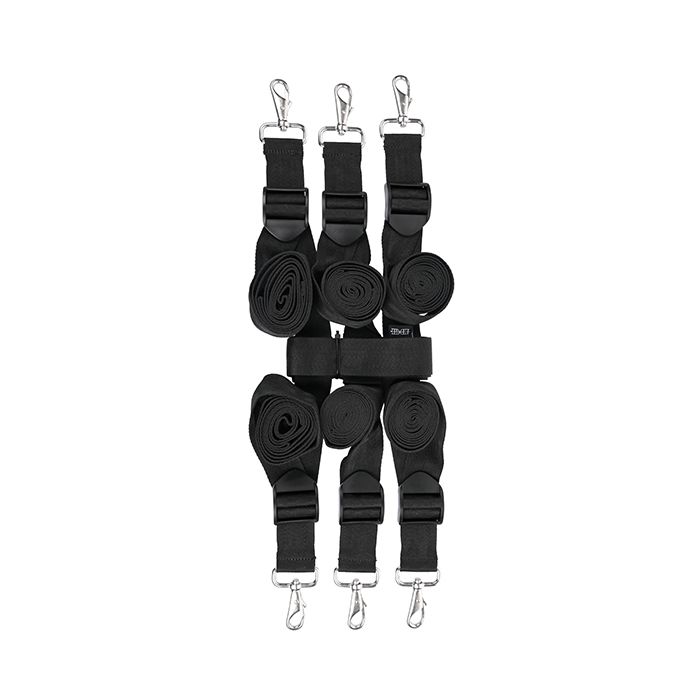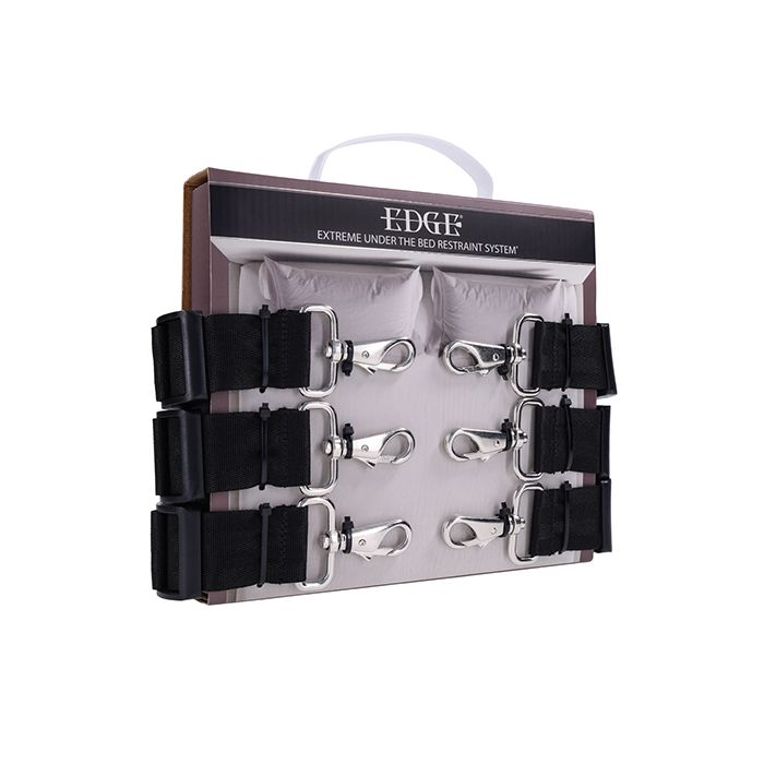 Unleash your deepest desires and dominate your lover with the Edge® Extreme Under the Bed® Restraint System. This quick-to-install bed bondage system transforms any bed into a dungeon of pleasure in minutes. Secure those limbs and take control, turning your partner's body into your personal playground. Perfect for home or on-the-go adventures, this versatile system fits any size mattress and can even be used around some doors. With six points of connection, you can attach cuffs, a collar, and more to create your ultimate fantasy scenario. The easy-on push clips promise unmatched strength and durability, ensuring your captive remains firmly in place no matter how wild your play becomes. Get ready to push the limits and indulge in the ultimate power exchange with Edge®. Pairs well with any wrist & ankle cuffs with a D ring clip. (Try the On The Edge Handcuffs) also great for s collars and more!