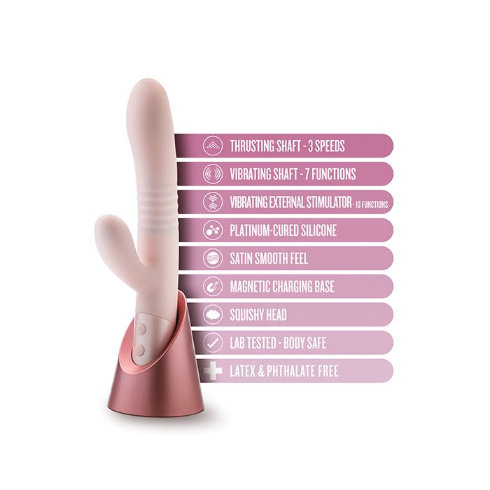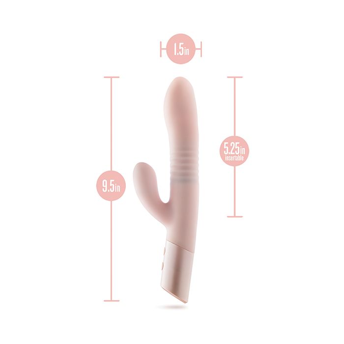 With its graceful design, this spirited rabbit is thoughtfully crafted with dual vibration points, providing a bundle of passionate pleasure for your G-spot & clitoris. Its rounded head is shaped for comfortable insertion, and its thrusting & vibrating shaft goes deeper to give you more pleasure than ever before.