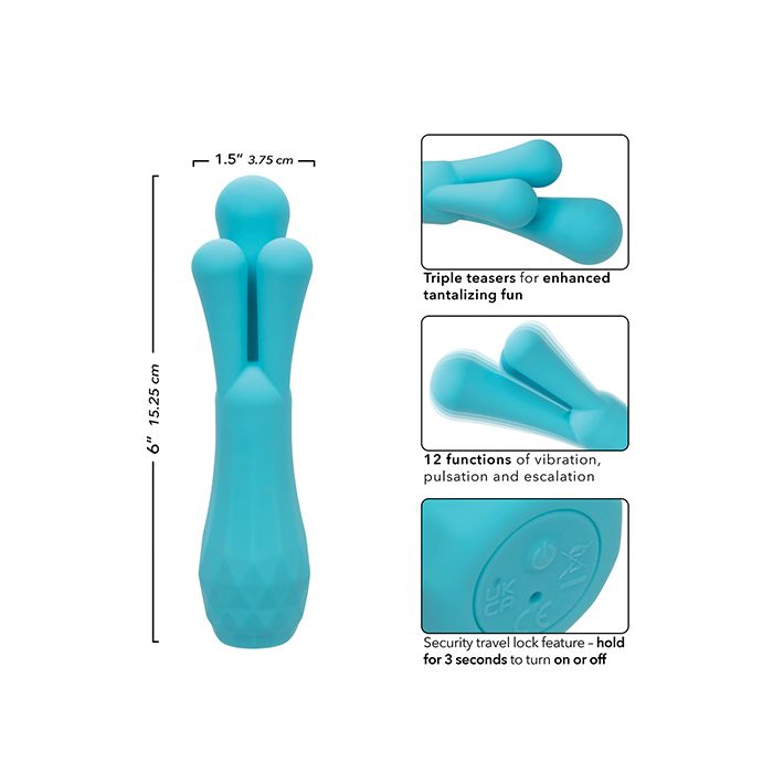 Discover unparalleled pleasure with the Gia™ Triple Teaser, a masterpiece designed to elevate your intimate moments. This vibrator features 3 distinct teasers, each crafted to provide maximum stimulation and enjoyment. Whether you're exploring alone or with a partner, its 12 thrilling functions of vibration, pulsation, and escalation promise a unique experience tailored to your desires.