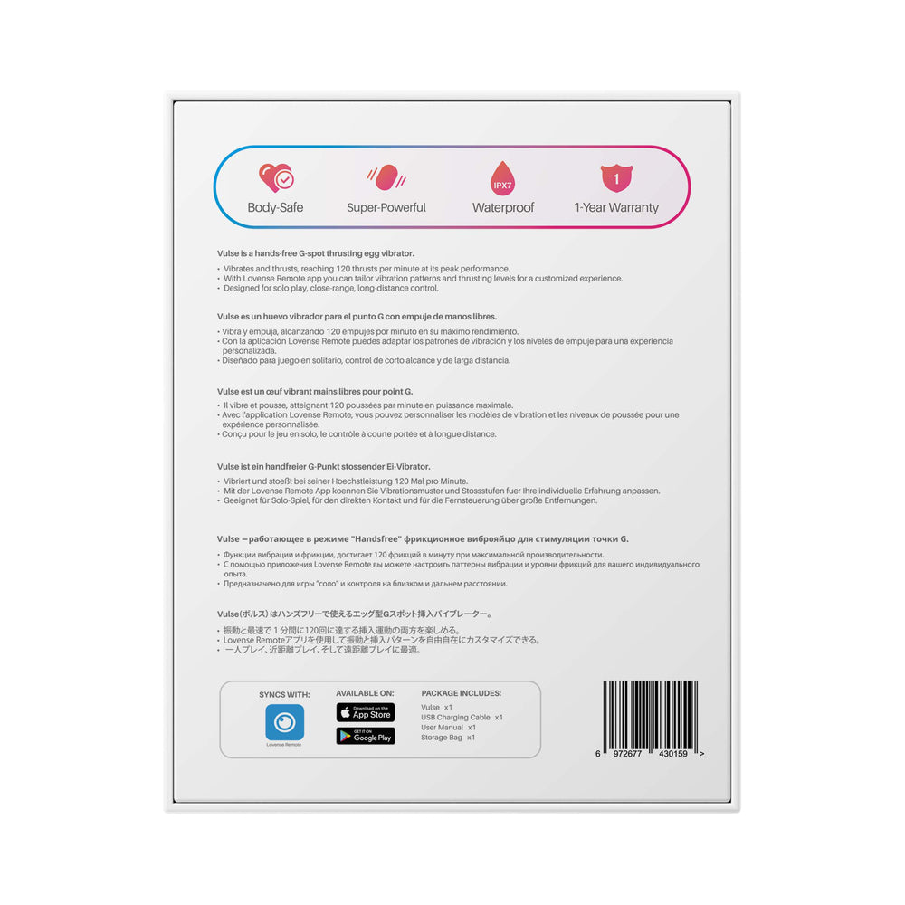 Elevate orgasm up to next levels with thrusts and vibes. Vulse enable to free your hands via its powerful motor. Vulse offers a unique experience by combining rapid, thrusting motions with powerful vibrations, delivering precise G-spot stimulation that leads to intense climaxes. With the ability to reach speeds of up to 120 strokes per minute and a 10mm thrusting length.